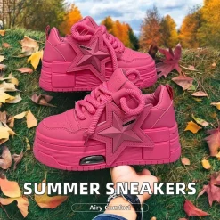 Women’s Hot Fashion Summer New Sneakers Breathable Thick-Sole Skateboard Shoes Casual Walking Style Board Shoes