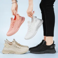Women’s Plus Size Casual Sneakers Breathable Soft Mesh Design Thick-Sole for Spring Autumn Fashionable Running Walking Shoes